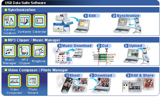 The retail package contains a Handset Manager software CD and a high quality USB interface data cable. This world’s most popular Data Suite has the most powerful features and supports the most extensive mobile phone brands and models. It enriches and backups user’s mobile contents, provides mobile internet access and works optionally as a power charger.